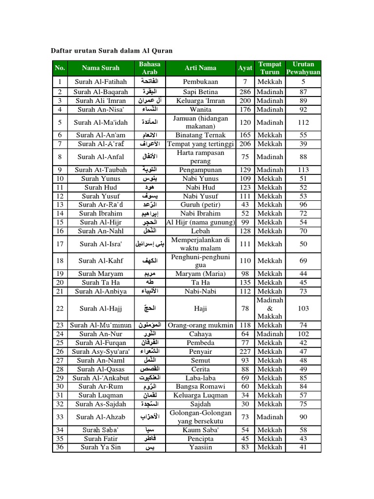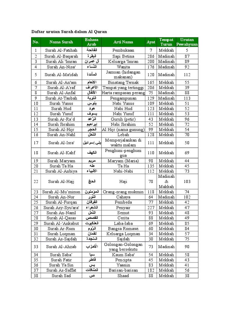 Daftar Urutan Surah Dalam Al Quran Pdf