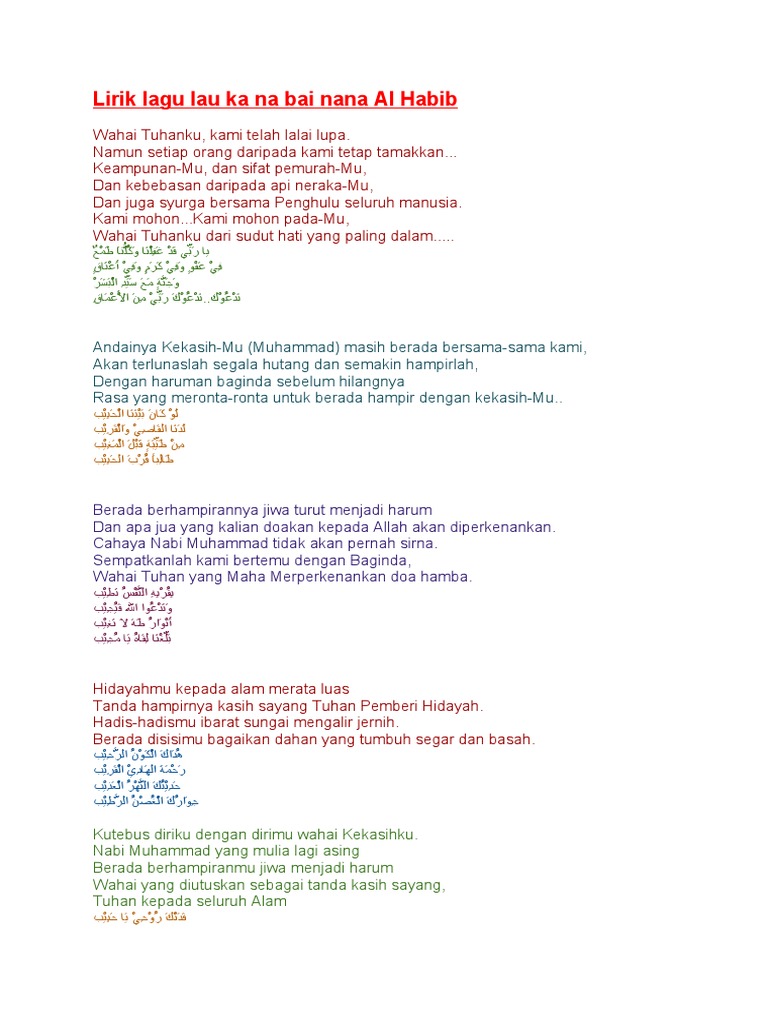 Lirik Lagu Lau Ka Na Bai Nana Al Habib Pdf