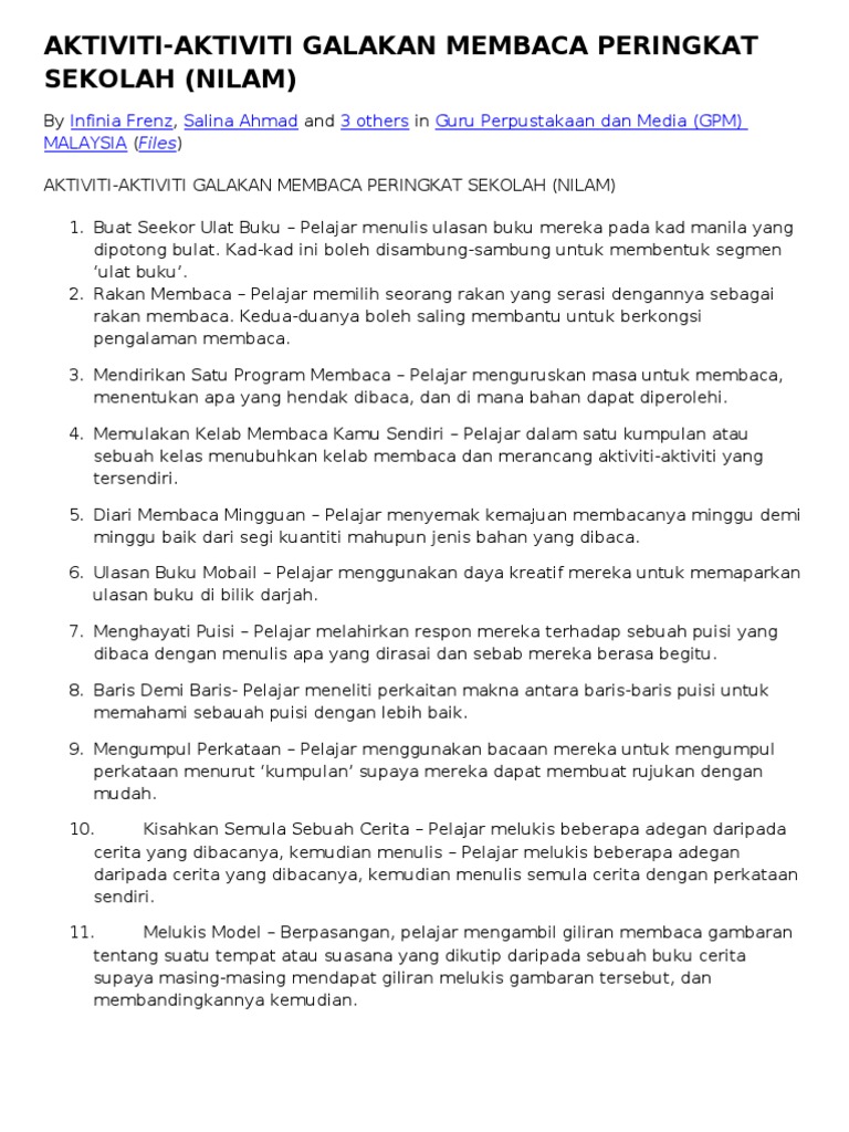 Aktiviti Aktiviti Galakan Membaca Peringkat Sekolah Nilam